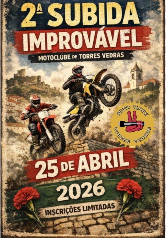 Depois do enorme sucesso da 1.ª edição, realizada no ano passado, o Motoclube de Torres Vedras está nos preparativos finais para trazer de volta a Subida Improvável, marcada para o dia 25 de abril de 2026, na Ribeira de Pedrulhos. O evento promete novamente atrair participantes dos quatro cantos do país, numa celebração motorizada que volta a coincidir com o Dia da Liberdade.