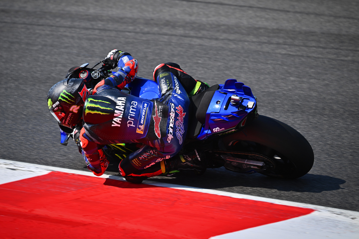 Segundo Quartararo, o melhor momento do fim de semana foi logo no primeiro treino. ‘A melhor sensação que tive foi no FP1, com pneu usado. Mas assim que o pneu aquece um pouco mais do que o esperado, o comportamento da moto muda completamente. É muito, muito estranho.’