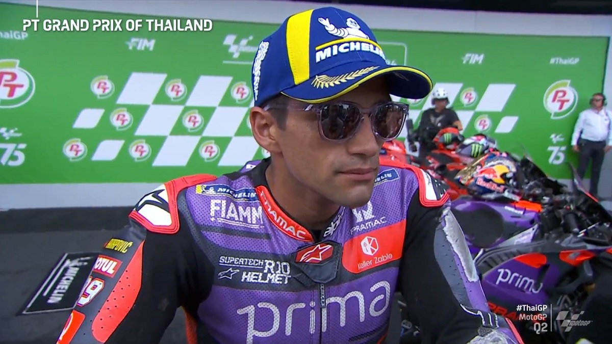 O espanhol da Prima Pramac disse à transmissão oficial: ‘Estou bem. A primeira fila era o objetivo. Hoje foi difícil; está muito calor, muito húmido, por isso foi difícil ser melhor do que ontem’.
