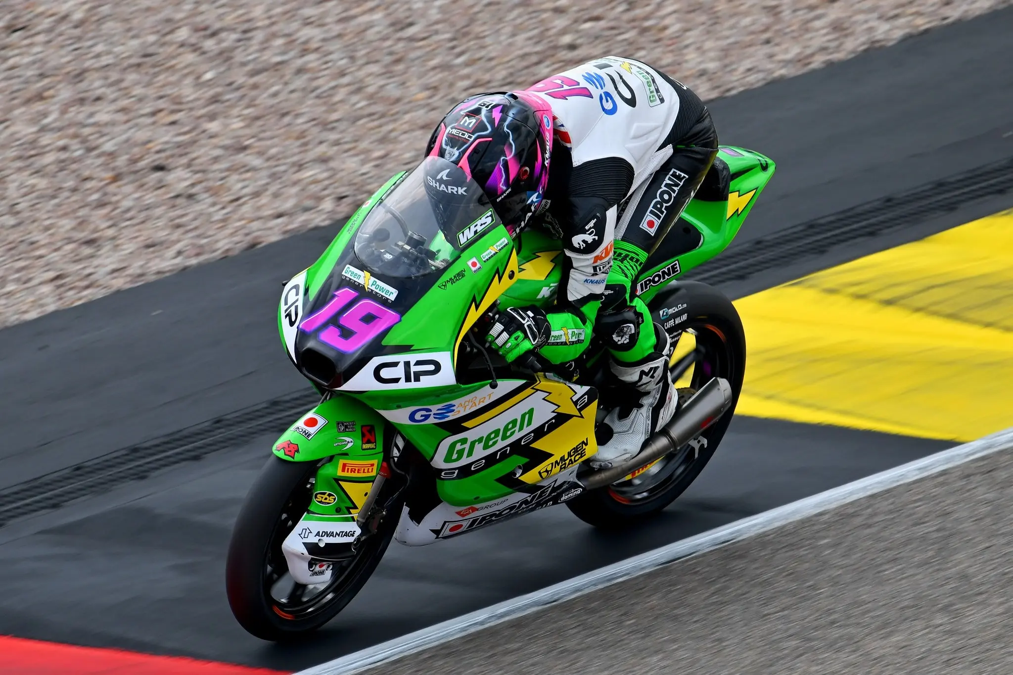 Mais rápido aquando da primeira sessão do GP da Alemanha o britânico Scott Ogden conseguiu em Sachsenring a ‘pole position’ para o GP da Alemanha, a sua primeira numa carreira onde realiza a sua 69ª corrida. A chuva acompanhou a sessão com intensidade e depois de uma bandeira vermelha para que fosse substituida uma secção de ‘air fence’ na Curva 8 o piloto da CIP Green Power brilhou no encharcado traçado alemão.
