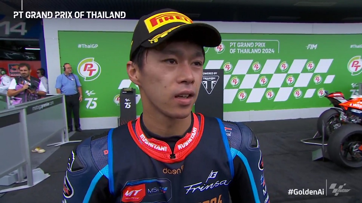 – Não tenho palavras. É simplesmente inacreditável. O que estava a passar pela minha cabeça eram todas as caras com quem trabalho: a minha equipa atual, claro, mas desde a [Asian Talent] Cup, e do Moto3. Não posso agradecer o suficiente a todos. Simplesmente sinto-me incrível, e não tenho palavras. Estou mesmo contente.