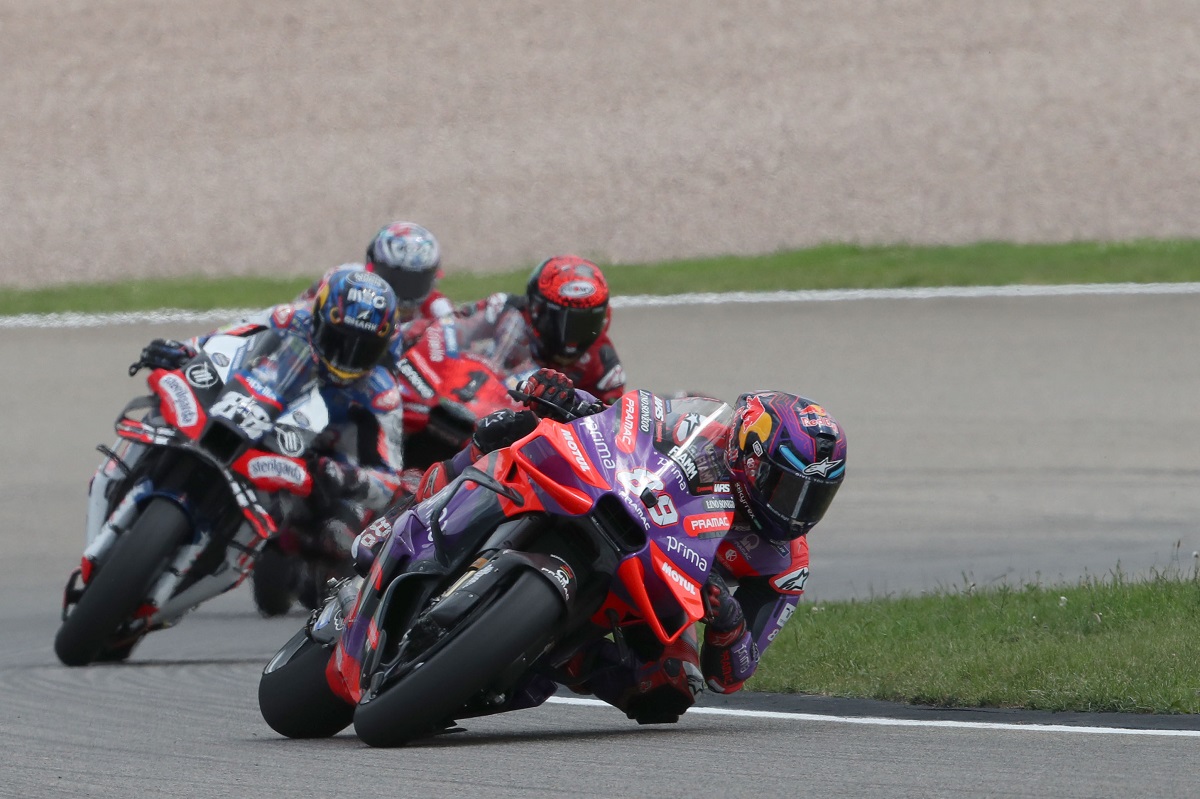 Jorge Martín perdeu uma possível vitória na penúltima volta do GP da Alemanha de MotoGP, quando caiu enquanto liderava entregando o triunfo de bandeja ao seu grande rival na luta pelo título, Francesco Bagnaia (Ducati).