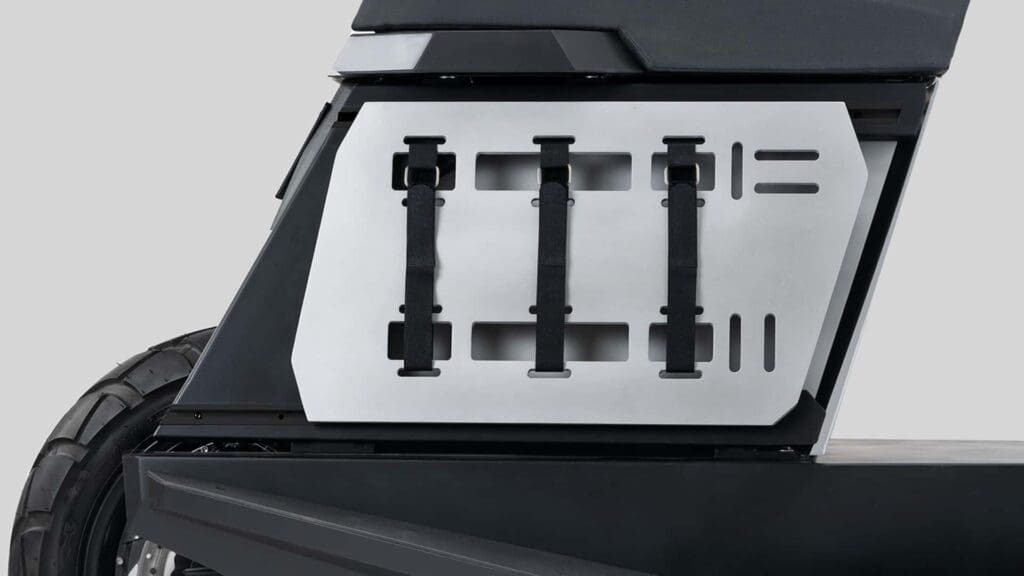 Escusado será dizer que a estrela do espetáculo no que diz respeito ao design da P1 é o sistema de armazenamento modular na parte de trás da scooter. Em vez de utilizar uma caixa superior como as scooters normais, a P1 integra uma caixa na parte traseira – é nela que se senta quando anda na cidade. Possui um sistema modular que lhe permite anexar componentes externos para obter ainda mais utilidade. Estes incluem suportes, bagagem e até altifalantes.