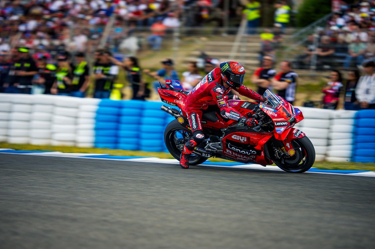 Depois de duas rondas menos positivas, Francesco Bagnaia voltou às vitórias no GP de Espanha de MotoGP. Em Jerez, o piloto da Ducat superou Marc Márquez (Gresini/Ducati), tendo liderado desde que a 15 voltas do fim Jorge Martín (Prima Pramac/Ducati) caiu à sua frente.