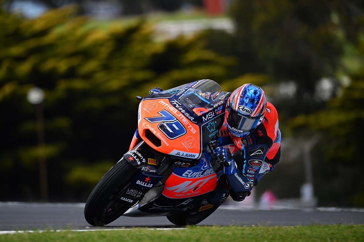 O espanhol passou para o comando à passagem dos seis minutos, e por lá ficou durante cerca de 20 minutos até ser batido por Arón Canet (Fantic Racing/Kalex). Logo a seguir, Diogo Moreira (Italtrans Racing Team/Kalex) fez ainda melhor do que ambos os espanhóis.