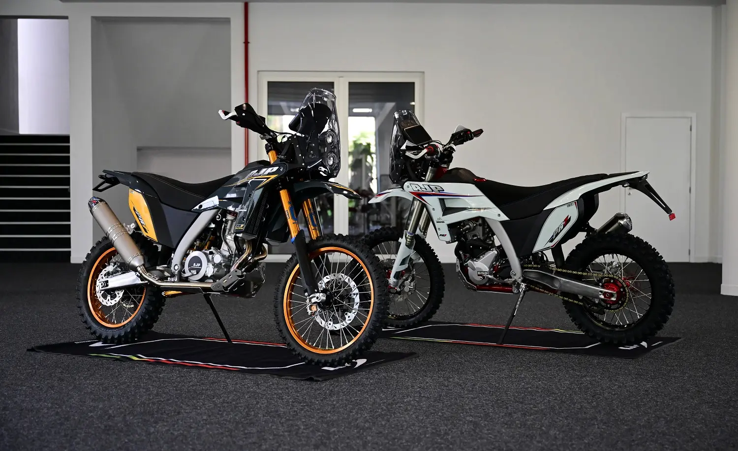 A base técnica mantém-se fiel à filosofia original do projeto: leveza, simplicidade funcional e elevada eficácia em todo-o-terreno. O quadro híbrido em alumínio e aço contribui para uma estrutura rígida, mas contida no peso, permitindo uma condução precisa mesmo em terrenos exigentes. A ergonomia foi trabalhada para longas jornadas, com um banco de inspiração rally que oferece maior conforto e liberdade de movimentos em condução de pé.