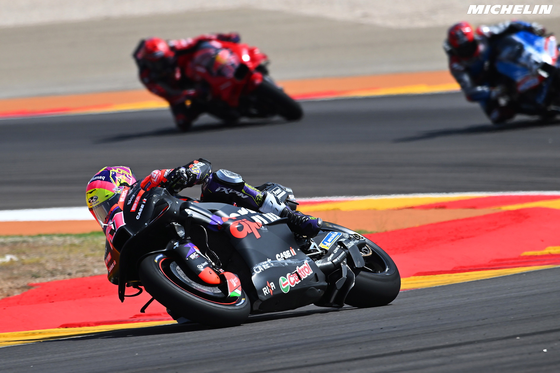 Ainda antes do arranque das sessões em Misano, e com o circuito a receber dois GPs, o espanhol foi questionado em que medida os pilotos irão beneficiar de ter duas corridas no mesmo local, aliado aos testes, com o #41 a responder assim, sem esquecer a vantagem que a Ducati terá, pelo número de motos em pista: ‘No final, também beneficia, mais uma vez, aqueles que têm mais motos, mais informação, mais voltas, mais possibilidades de testar configurações e peças novas. É preciso ser inteligente e estratega durante os próximos quinze dias’.