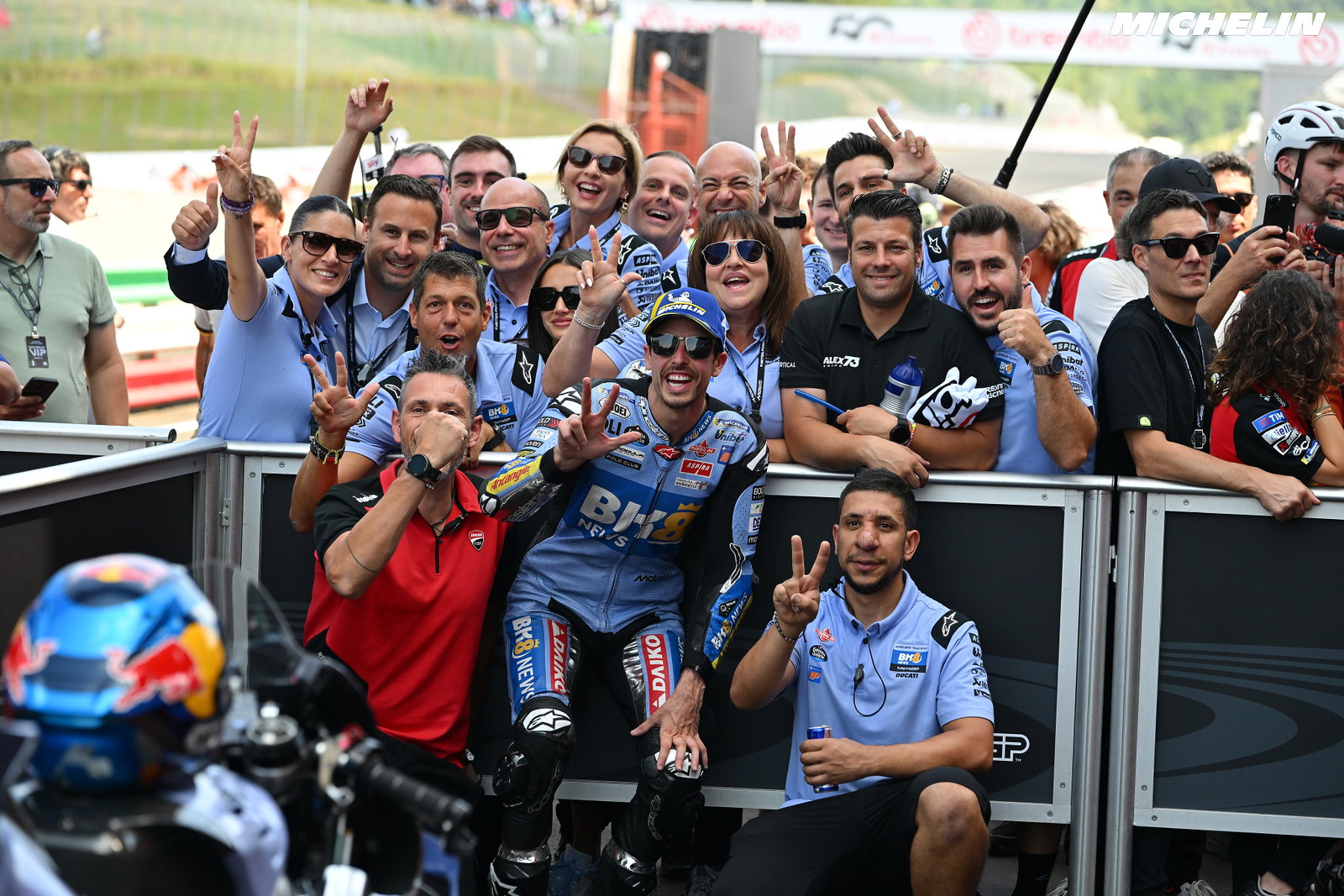Alex Márquez, que partiu do fundo da primeira fila, testemunhou os problemas de Marc na linha de partida e pressentiu uma oportunidade, mas ficou surpreendido no início da segunda volta ao ver a Desmosedici da Ducati Lenovo Team a mover-se para o seu exterior na aproximação à primeira curva.