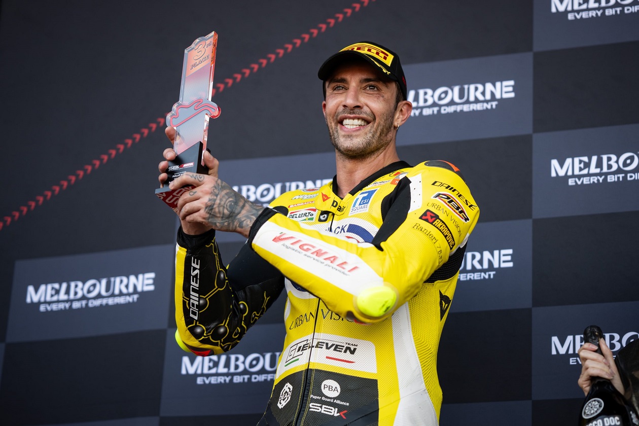 O italiano que corre com as cores da Team Go Eleven pelo segundo ano consecutivo falou assim, em comunicado oficial de equipa, sobre a sua prestação na Austrália durante o dia de hoje: ‘Foi um bom domingo para nós na Austrália; esta manhã tive um bom arranque e tentei seguir o [Nicolò] Bulega na Corrida Superpole, mas faltavam-nos umas décimas por volta. Para a Corrida 2 fizemos algumas alterações na moto e a minha sensação melhorou ainda mais. Na primeira parte da corrida tinha uma boa vantagem sobre o terceiro lugar, depois o Álvaro [Bautista] conseguiu ultrapassar-me’.