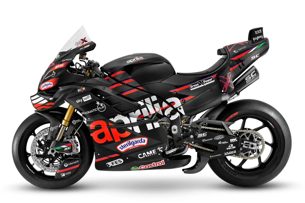 Concebida para celebrar os 10 anos do regresso da marca a MotoGP, a RSV4 X-GP representa a ligação mais direta entre a competição e a estrada de circuito. O motor V4 a 65º, de 1099 cc, preparado pelo departamento de competição de Noale, debita 238 cv às 13.750 rpm, com um binário de 131 Nm. Com apenas 165 kg em seco, a relação peso/potência aproxima-se dos valores das máquinas do Mundial.