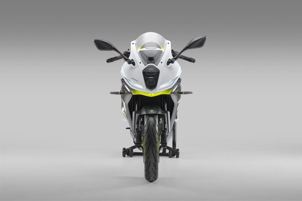 A moto, que tem função de monitorização de pressão dos pneus, chegará em 2025 em três possíveis decorações: branco Pure White, cinzento Anthracite Grey; e verde GT Green.
