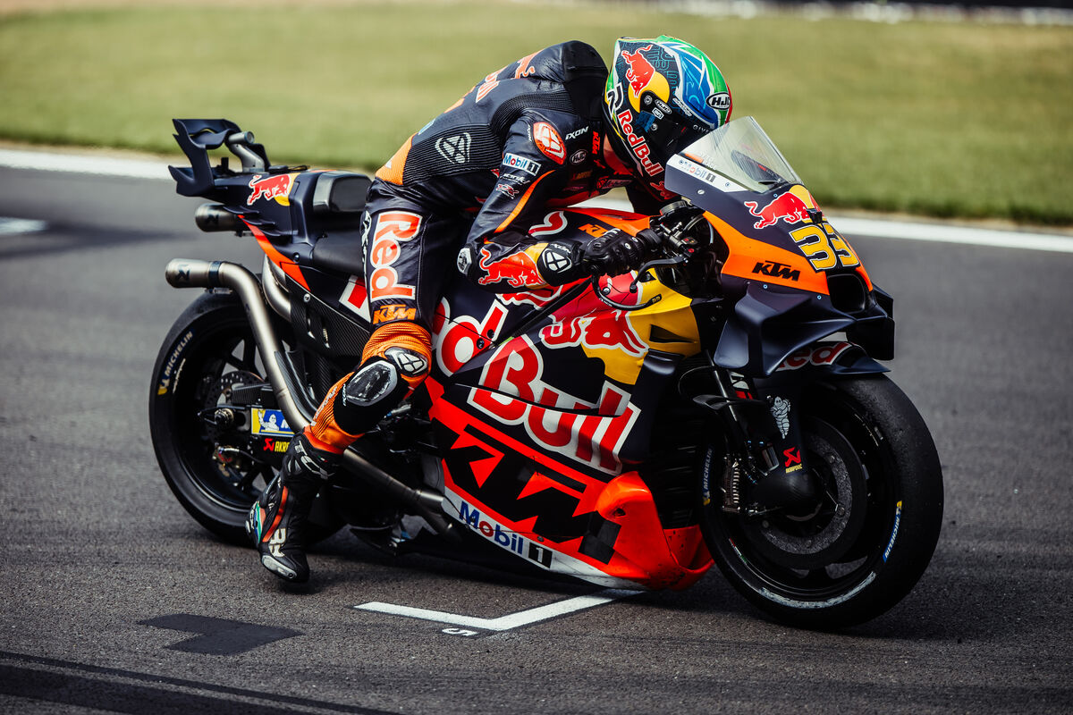 Na estreia em pista das decorações especiais para o 75.º aniversário do MotoGP, Brad Binder foi o mais veloz do warm-up do GP da Grã-Bretanha – que permitiu ultimar as preparações para a corrida desta tarde. Miguel Oliveira fez o 11.º tempo.