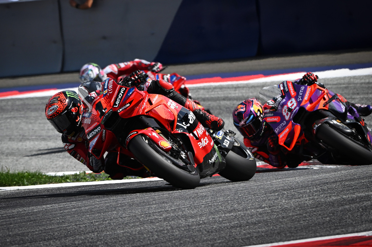 Quanto a Bagnaia, Checa falou assim do que de melhor vê no italiano: ‘Bem, o Pecco é a consistência dele, é que não sei quais são os pontos fortes do Pecco. Diria que é constante, com a capacidade dele de gerir, mas vejam em Misano, o que é claro é que quando já vais a reboque, quando já partes atrás, tudo se complica, e se o Pecco não melhorar o início de corrida e o arranque, honestamente penso que vai ter muitas dificuldades, porque agora há três ou quatro pilotos ali que podem pôr-se à frente, e depois demora meia corrida a conseguir superá-los. E o Jorge aí pode pô-los a dois segundos, que recuperar os segundos quando as forças estão tão niveladas, ou dois ou três, não sei, põem-te numa situação muito complicada’.