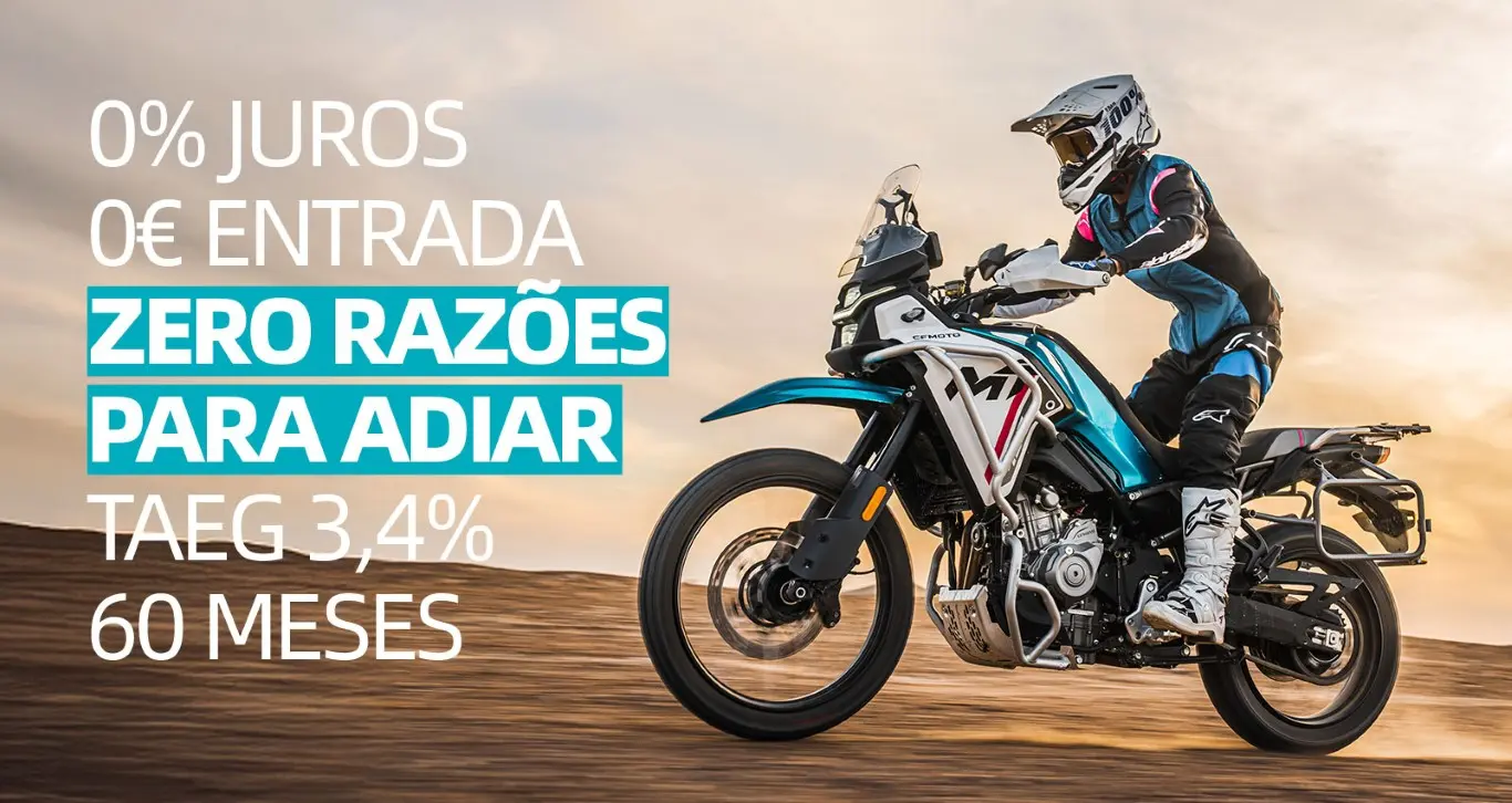 A fabricante chinesa CFMOTO acaba de lançar em Portugal uma das suas campanhas promocionais mais agressivas de sempre. A iniciativa «Zero Razões para Adiar» promete facilitar o acesso aos veículos da marca através de condições de financiamento sem precedentes no mercado nacional.