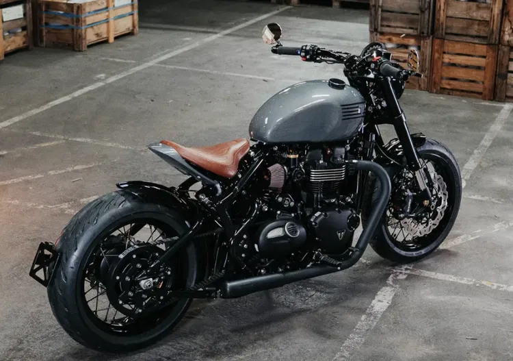 O motor permanece intocado: o bicilíndrico paralelo de 1 200 cc continua a debitar a sua personalidade típica, tal como na versão standard. O resultado final é uma bobber que mistura engenharia britânica com artesanato francês, refinada sem ser excessiva e fiel ao espírito Triumph.