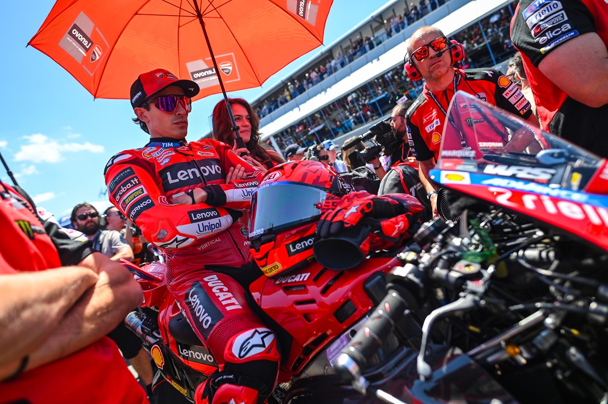 Do ponto de vista da moto, Márquez admitiu que a Ducati Desmosedici o deixa mais confortável: ‘Eu lembro-me que quando eu estava a pilotar a Honda estava sempre a lutar com a moto, mas mesmo assim eu estava lá. Agora, com a Ducati, a exigência física e todas essas coisas… estou a pilotar suavemente, estou a pilotar de uma forma fácl, e isto deixa-me mais relaxado’.