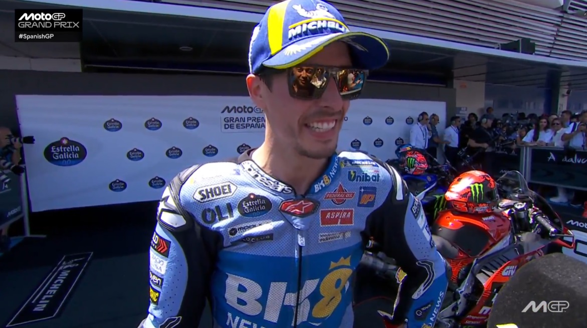 Aos microfones da competição, o piloto da Gresini começou por dizer: ‘É fantástico, é fantástico, é uma festa de aniversário fantástica. A primeira vitória [no MotoGP ao domingo] em Jerez é algo fantástico. Parei a moto e pensar colocar algo aqui para pernoitar, foi incrível. O público na curva 1… Foi incrível e não posso pedir mais nada’.