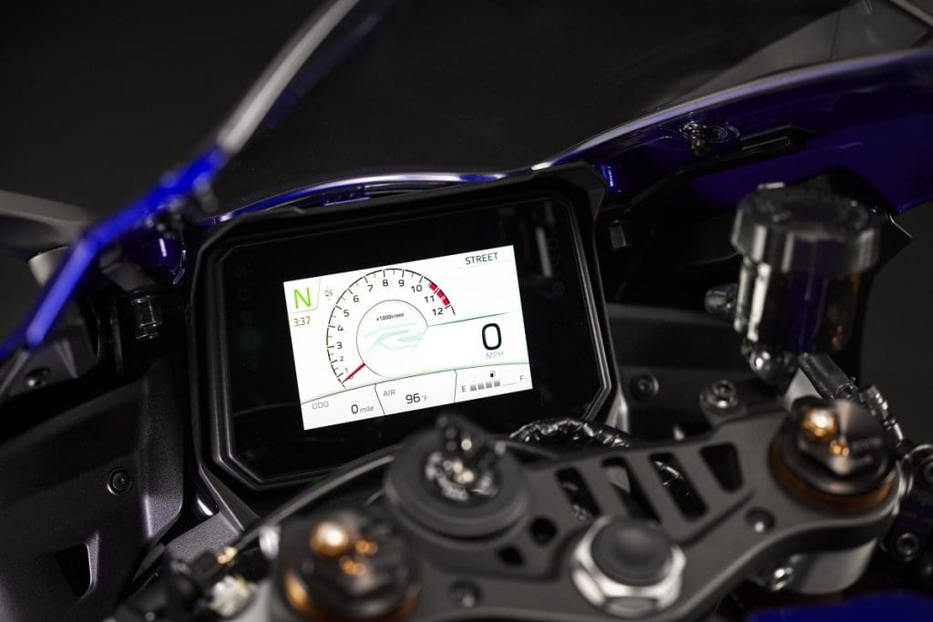 A bordo, o condutor encontra um guiador com novo design dos comandos e uma nova interface, tal como um ecrã TFT a cores de cinco polegadas que pode ser personalizado em quatro temas selecionáveis. Tem, igualmente, modo de pista – ideal para o uso em circuito, inclui cronómetro com tempo por volta.