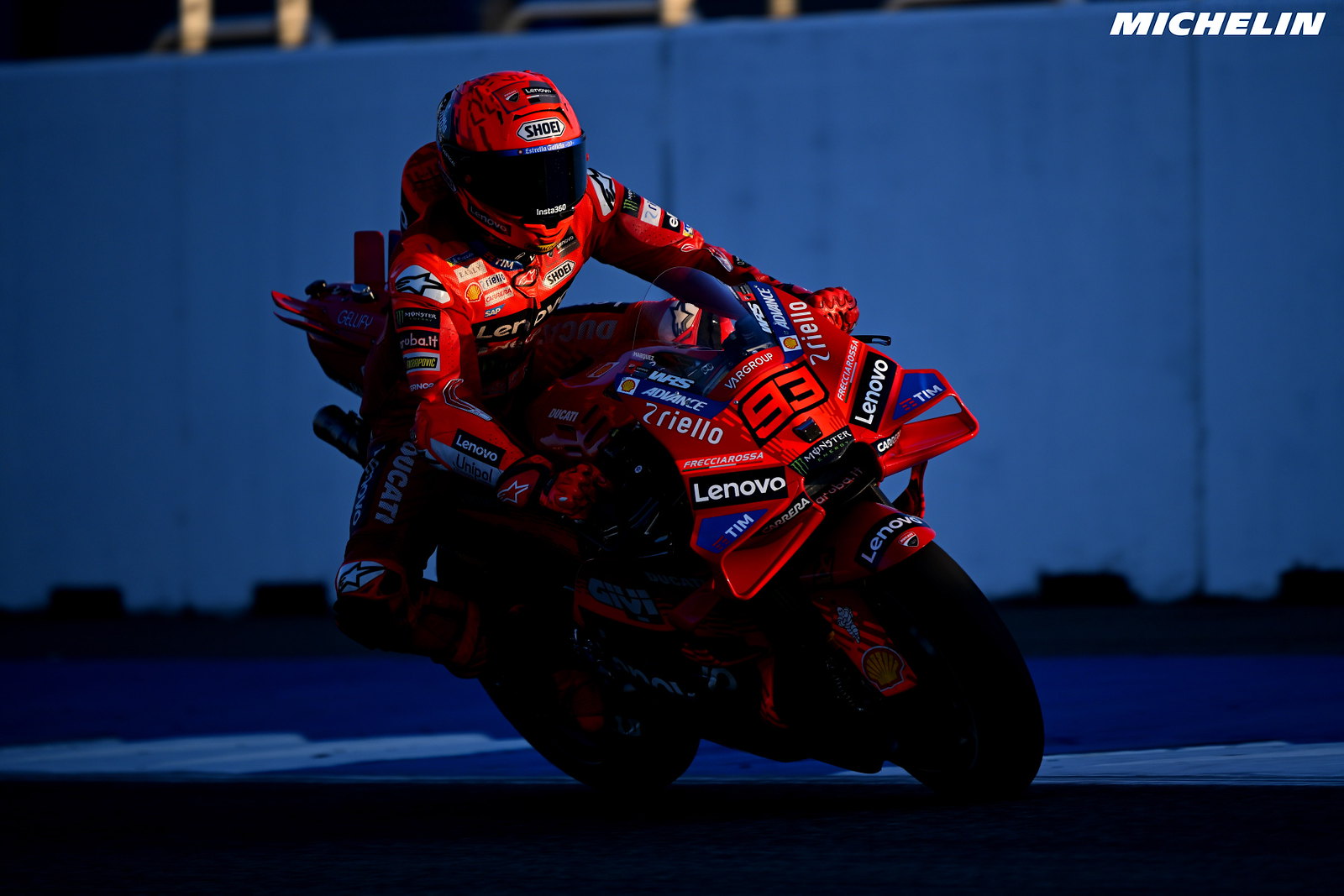 O grande nome do dia tem sido Marc Márquez, que tem vindo a demonstrar um ritmo impressionante aos comandos da Ducati. O espanhol registou um tempo de 1:28.855s, sendo o primeiro a entrar na casa do 1:28 nestes testes, aproximando-se perigosamente do recorde da pista, estabelecido por Francesco Bagnaia no ano passado (1:28.700s).