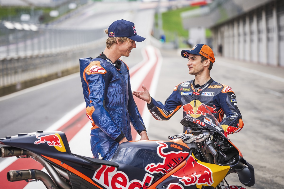 Fabio Wibmer é um conhecido ciclista de trial e downhill, mas recentemente trocou as bicicletas por uma moto de MotoGP – a KTM RC16, pilotando-a no Red Bull Ring com o apoio de Dani Pedrosa.