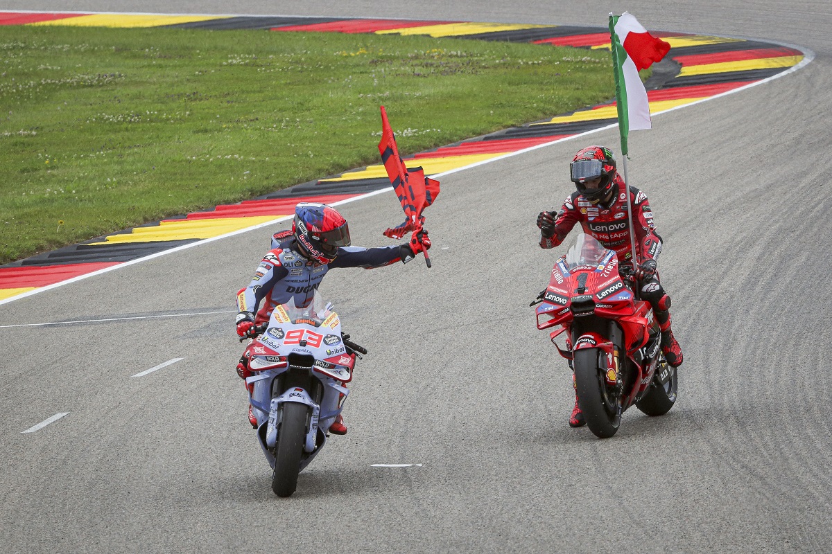 O engenheiro italiano acredita que Bagnaia e Márquez estão num patamar semelhante, mas há uma qualidade que se vê a destacar no espanhol: ‘Ele é particularmente bom nas curvas à esquerda. Em travagem, penso que o Pecco e o Marc estão no mesmo nível – por vezes um é melhor, por vezes o outro’.