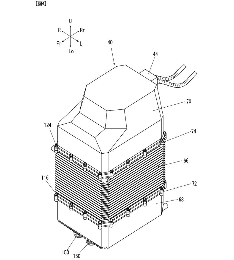O construtor de Iwata descreve nos documentos um sistema de arrefecimento para um pacote de bateria, integrando-o numa moto super desportiva com traços similares aos da R1.