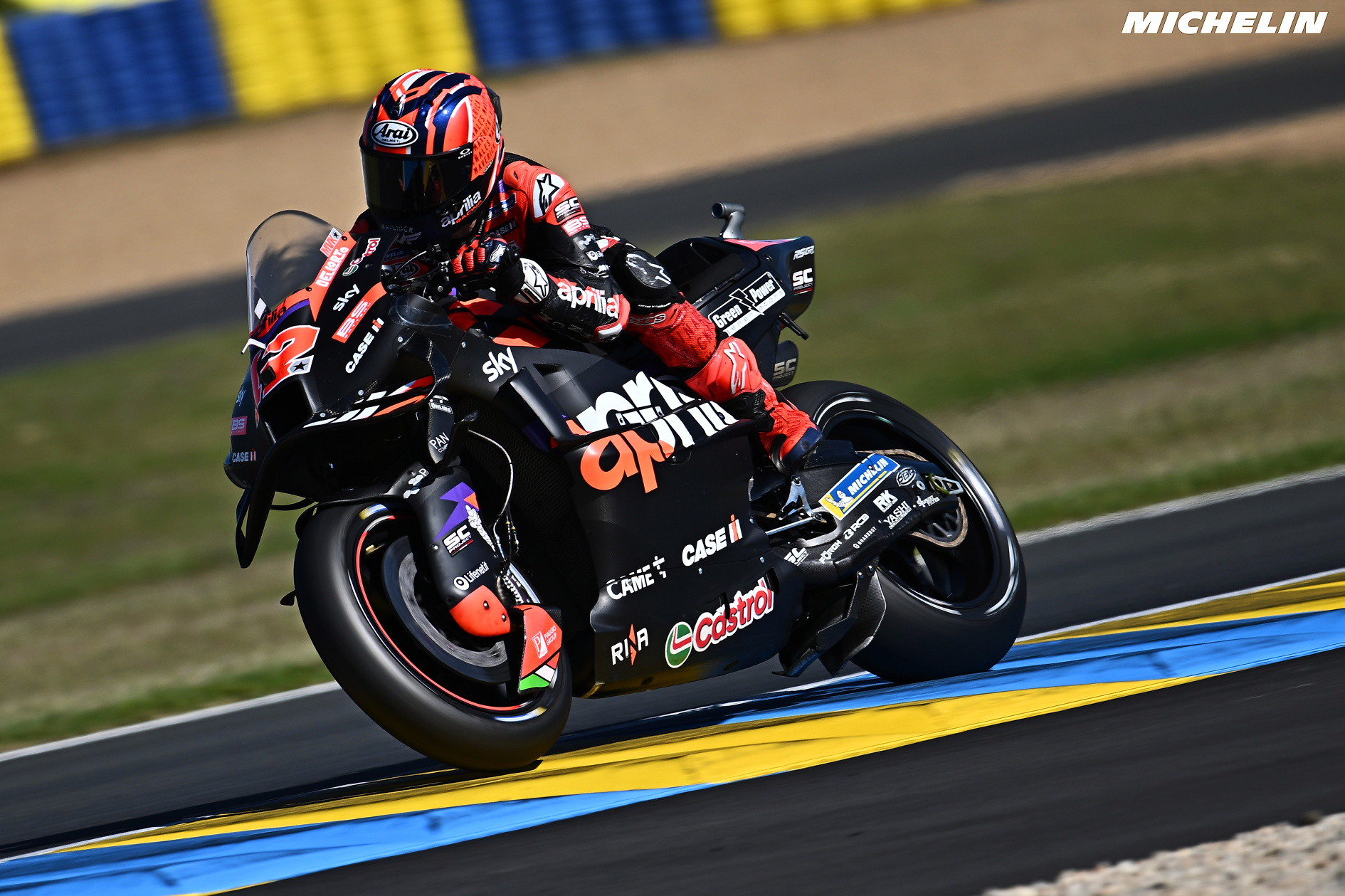 Viñales teve hoje um problema de temperatura elevada que afetou o desempenho da Aprilia RS-GP: ‘Não fomos suficientemente rápidos, como nos treinos, mas sei porquê. Tive uma temperatura elevada no pneu traseiro e, basicamente, estava a bloquear muito nas curvas, de lado, e nunca parei. Temos de verificar os dados mas, felizmente, colocámo-nos numa boa posição e controlámos um pouco a distância para o Enea [Bastianini], que vinha muito rápido. Estou muito contente e bastante otimista para amanhã e, se conseguirmos corrigir a temperatura do pneu, de certeza que vamos fazer uma corrida fantástica. Temos de olhar para a frente e acreditar que somos capazes de o fazer’.