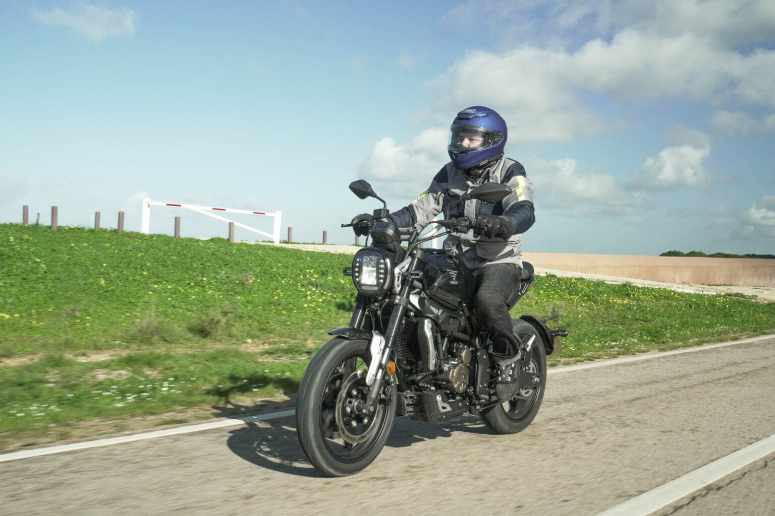 Para os recém habilitados com carta A2 a moto que temos aqui reúne boas particularidades: uma potência de 28,5 cavalos fácil de dosear até pelos menos experientes, um baixo peso de 170 kg em ordem de marcha (que na verdade até parece bem menor) e um assento acessível. Esteticamente dá logo nas vistas pelo lindíssimo farol, farolim e piscas LED e pelo bom aspeto da ciclística, com forquilha invertida e dois discos de travão na frente com ABS da Bosch (marca que dá nome também ao sistema de injeção de combustível).