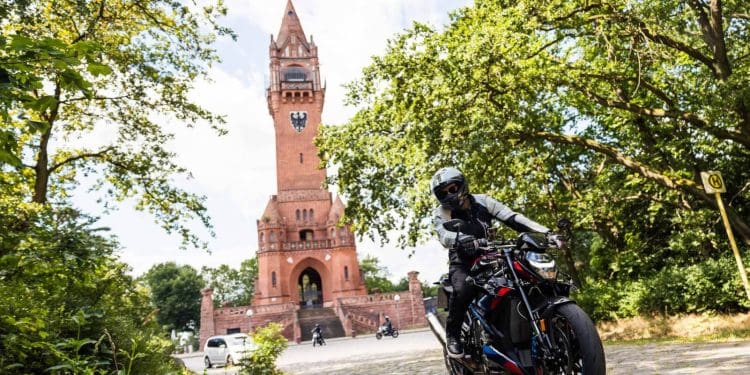 Um dos pontos altos foi naturalmente a visita à fábrica da BMW Motorrad. Ao longo dos anos fomos visitando várias fábricas de várias marcas, e esta fábrica em Berlim está entre as melhores das melhores. Por exemplo, os seus trabalhadores são formados com auxílio a óculos de realidade aumentada; todas as instalações são ultramodernas com secções da fábrica tão avançadas que nem humanos tem, ou por exemplo, possuem robots não tripulados responsáveis por transportar 1 milhão de peças diariamente dentro da fábrica. Outro facto interessante é que quase todas as peças são fabricadas de raiz na própria fábrica. Estamos a falar de uma fábrica com 4.000 trabalhadores onde produzem 27 dos 36 modelos disponíveis na gama BMW. É impressionante saber que produzem aqui todos os cerca de 5.000 componentes que compõem uma moto (não produzem todos os parafusos claro…), mas produzem por exemplo as baterias da CE04!
