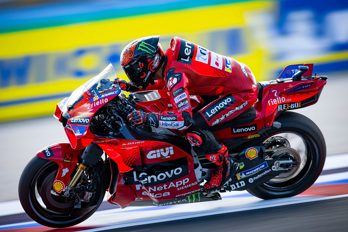 Francesco Bagnaia superou a dor e o desconforto para liderar o Treino do GP de San Marino de MotoGP com uma volta em 1m30,685s com a qual bateu Marc Márquez (Gresini/Ducati) por 0,185s. Assim, o dia inaugural em Misano deu boas indicações ao homem da Ducati, apesar das dificuldades físicas.