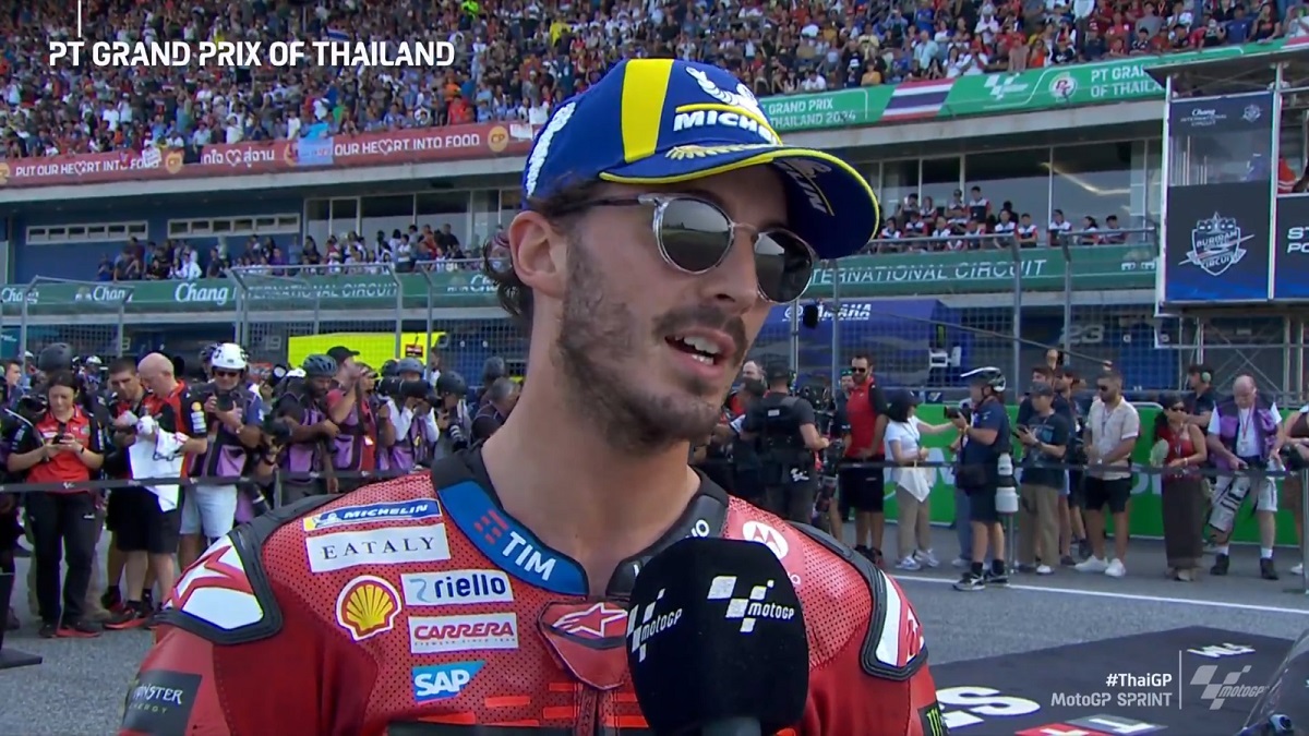 As sensações de Bagnaia na moto não foram as ideais, conforme explicou em entrevista à transmissão oficial. Mas o italiano acabou por não ficar totalmente desagradado com o resultado – que limita as perdas para Martín: