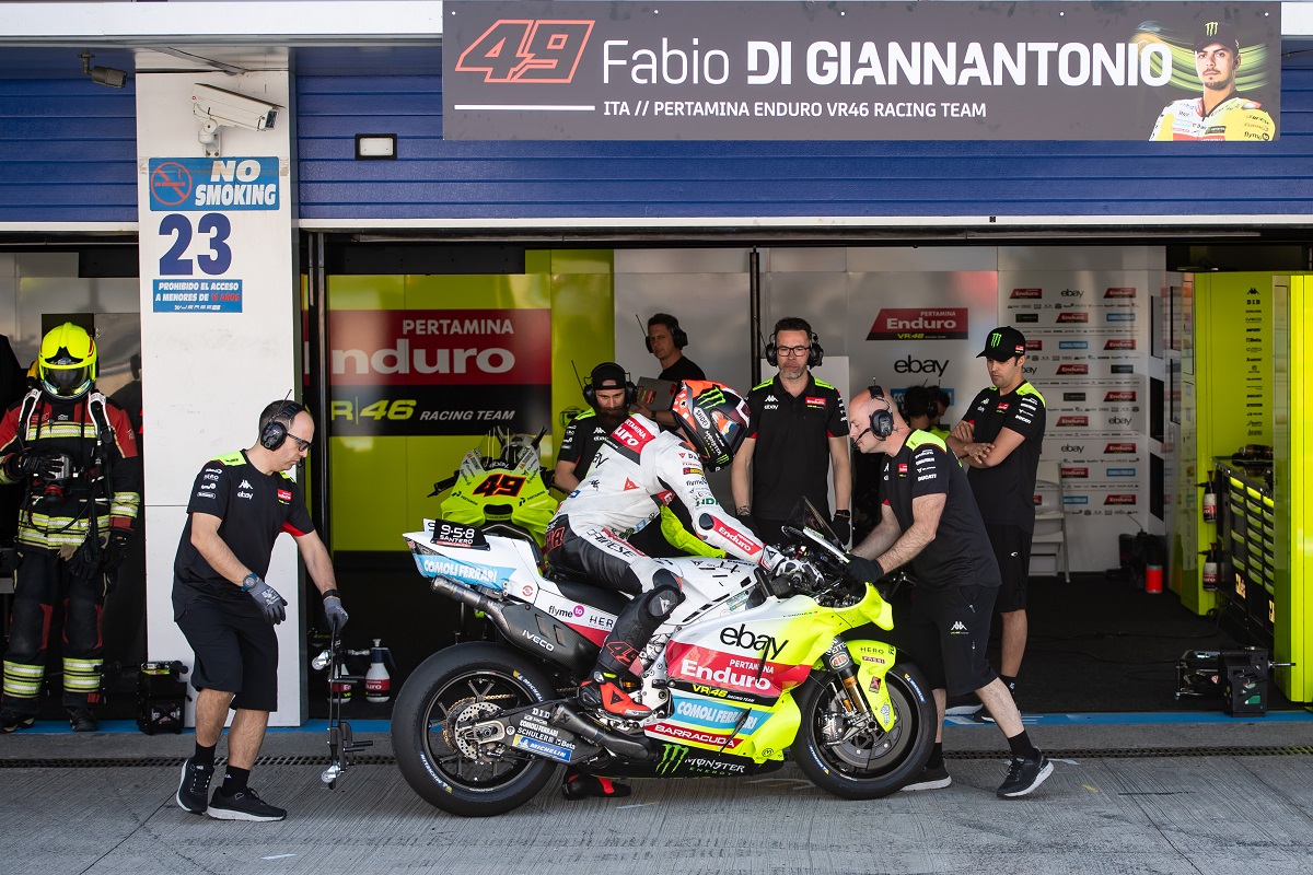 Fabio Di Giannantonio fez o melhor tempo dos testes de MotoGP que ontem decorreram em Jerez. O piloto da Pertamina Enduro VR46 completou uma volta em 1m36,405s e superou Maverick Viñales (Aprilia) por 0,087s.