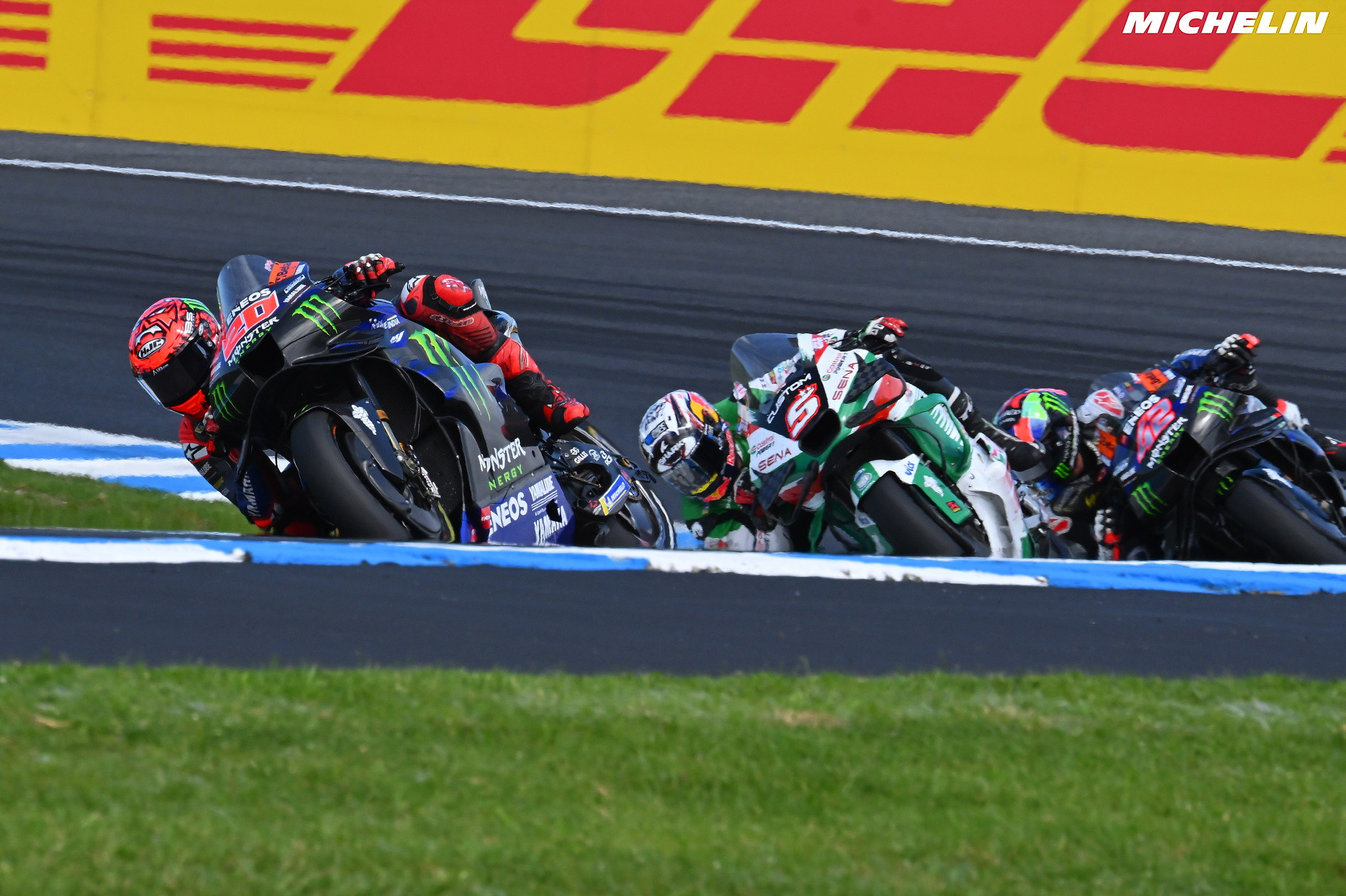 Depois Zarco falou sobre algumas ultrapassagens que fez, e como ele mesmo foi ultrapassado mais tarde, até pelo seu compatriota, num ritmo que o surpreendeu: ‘O Raúl [Fernández] ultrapassou-me, era mais rápido, e depois o Jack [Miller], e consegui ficar com ele, apanhámos o [Fabio] Quartararo e depois quando ultrapassei o Quarta esperava conseguir ganhar-lhe alguma margem, manter-me com o Jack e talvez até o atacar. Mas o Quartararo conseguiu recuperar, foi muito impressionante e ultrapassou-me de novo, apanhou o Jack e depois também o Raúl’.