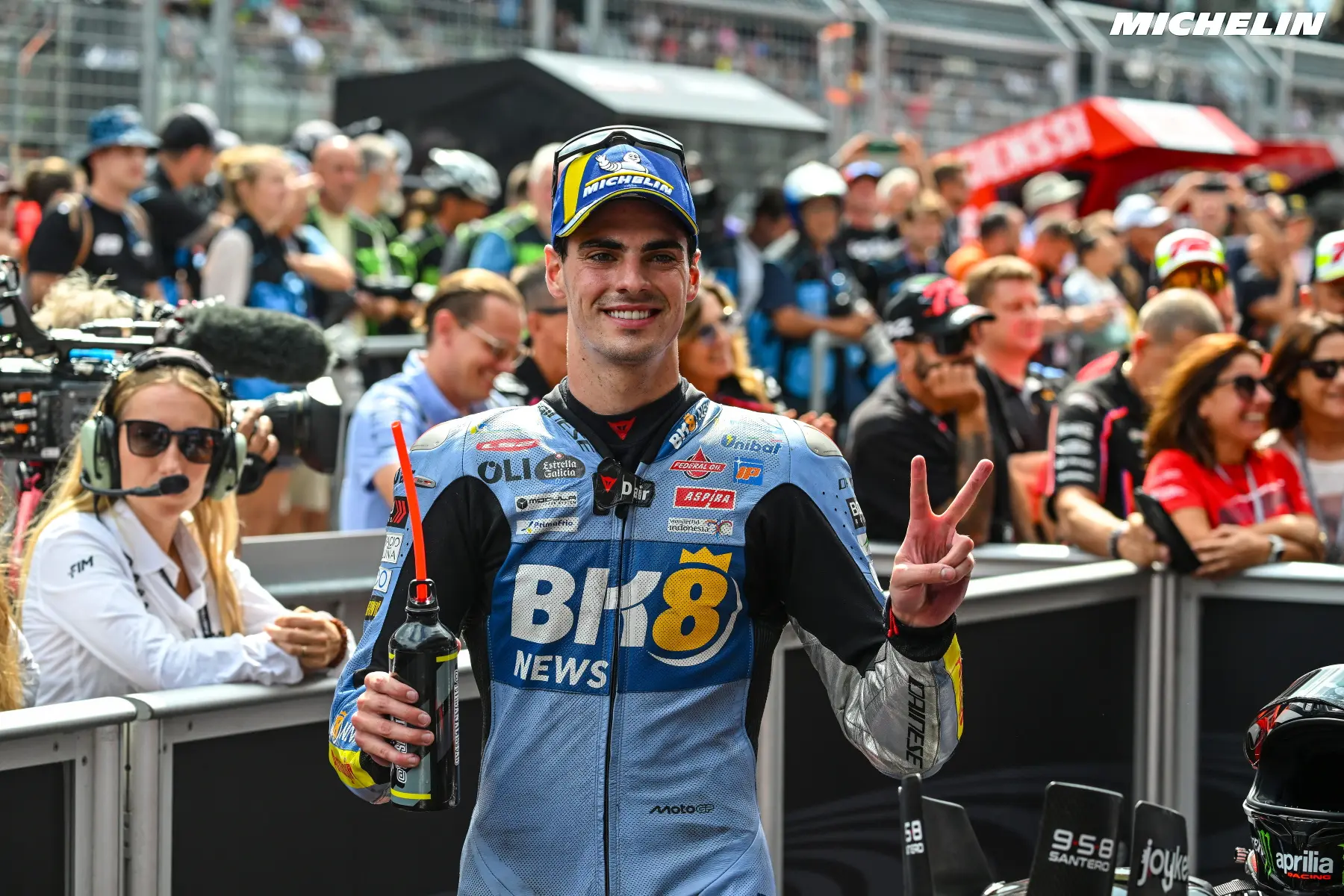 Partindo de uma posição aparentemente desfavorável, o espanhol lançou-se numa recuperação impressionante, ultrapassando adversários um a um. À 15.ª volta já rodava em quinto, a quatro segundos do líder. Dez voltas depois, na 24.ª, a diferença tinha encolhido para apenas uma décima de segundo — transformando-o numa ameaça real ao até então intocável Marc Márquez. “Foi uma das melhores corridas da minha vida”, confessou Aldeguer, com um sorriso rasgado no rosto. “Na primeira parte, consegui ultrapassar os outros pilotos sem problemas.”
