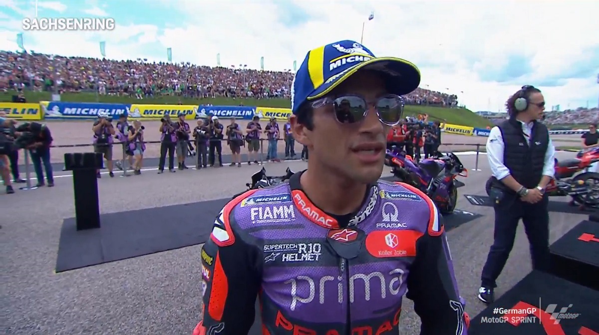 Jorge Martín voltou às vitórias este sábado, ao impor-se na corrida Sprint do GP da Alemanha de MotoGP. Foi uma corrida renhida em Sachsenring, na qual raramente conseguiu ter mais de um segundo de avanço.