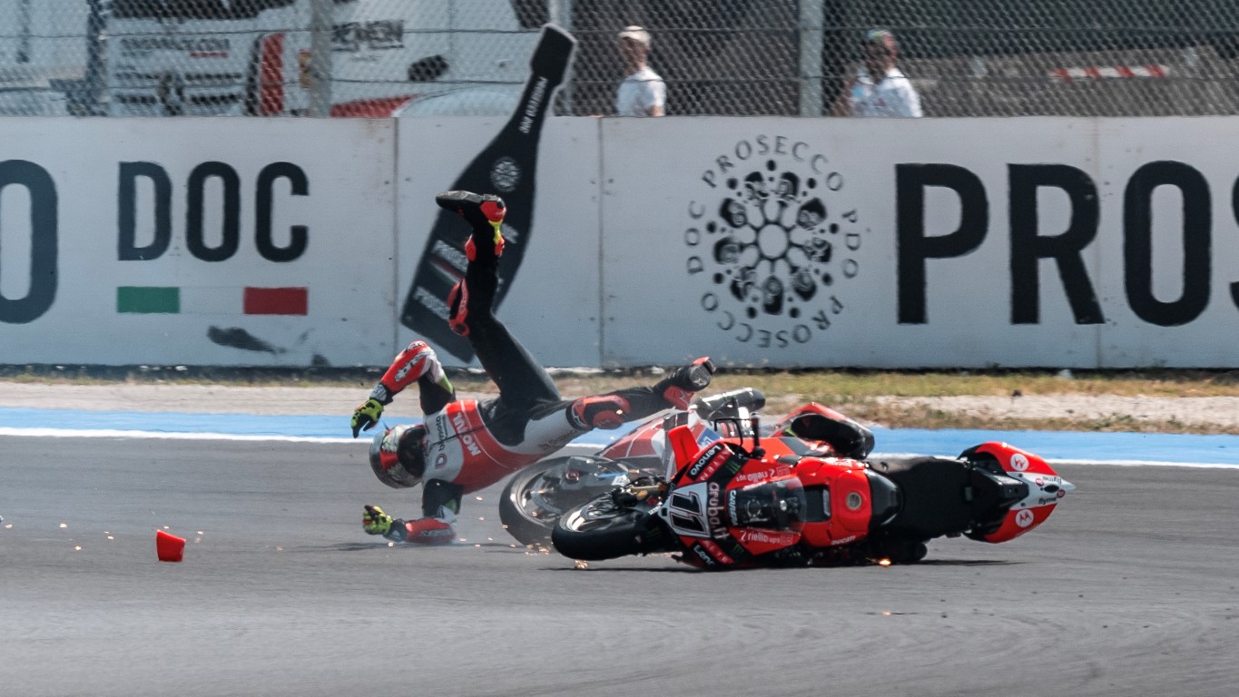 A Tissot Superpole Race no Circuito Mundial de Misano “Marco Simoncelli” começou com um dramático acidente que eliminou os dois primeiros classificados logo na primeira curva. Nicolo Bulega, líder do campeonato mundial, executou uma excelente partida desde a quarta posição para conquistar o holeshot, mas viu a sua corrida terminar abruptamente quando Axel Bassani perdeu o controlo da sua Bimota e colidiu com o piloto da Ducati.