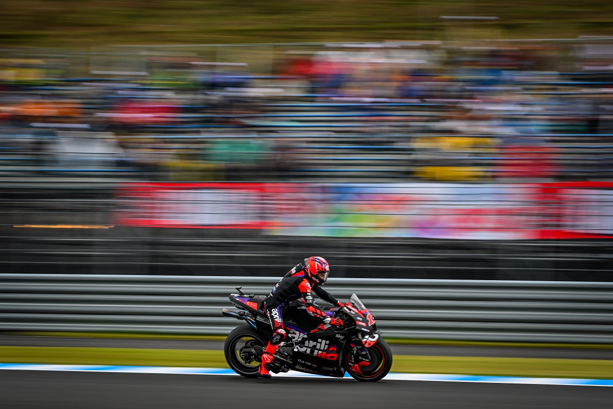 Maverick Viñales não chegou ao fim do GP do Japão de MotoGP. O piloto da Aprilia teve de abandonar a meio da prova, depois de cair, mas até à altura estava num modesto 11.º lugar – longe dos resultados pretendidos.