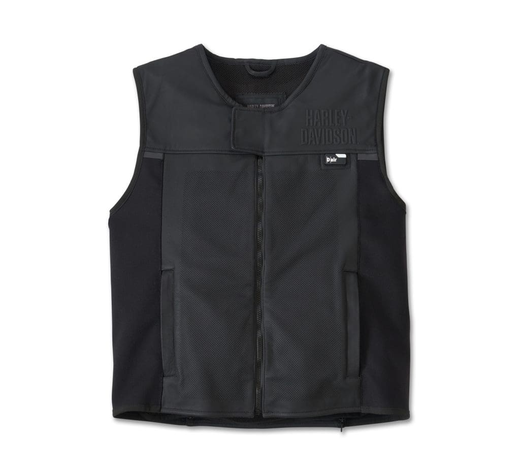 Tanto o Harley-Davidson® Smart Vest para homem (P/N 98017-24VM, tamanho S a 2XL) quanto o Harley-Davidson® Smart Vest para mulher (P/N 98021-24VW, tamanho XS a 2XL) apresentam um revestimento em pele preta heavyweight perfurada para permitir o fluxo de ar e painéis laterais elásticos para conforto superior. Ambos os designs apresentam bolsos com fecho, material refletor 3M Scotchlite Black Carbon para melhorar a visibilidade noturna e a marca Harley-Davidson em relevo nas costas. O design delgado limita o volume e o colete pode ser usado por baixo ou por cima de um blusão (se usado por baixo, deve ser deixada um espaço de cerca de cinco centímetros para o caso de ser ativado).