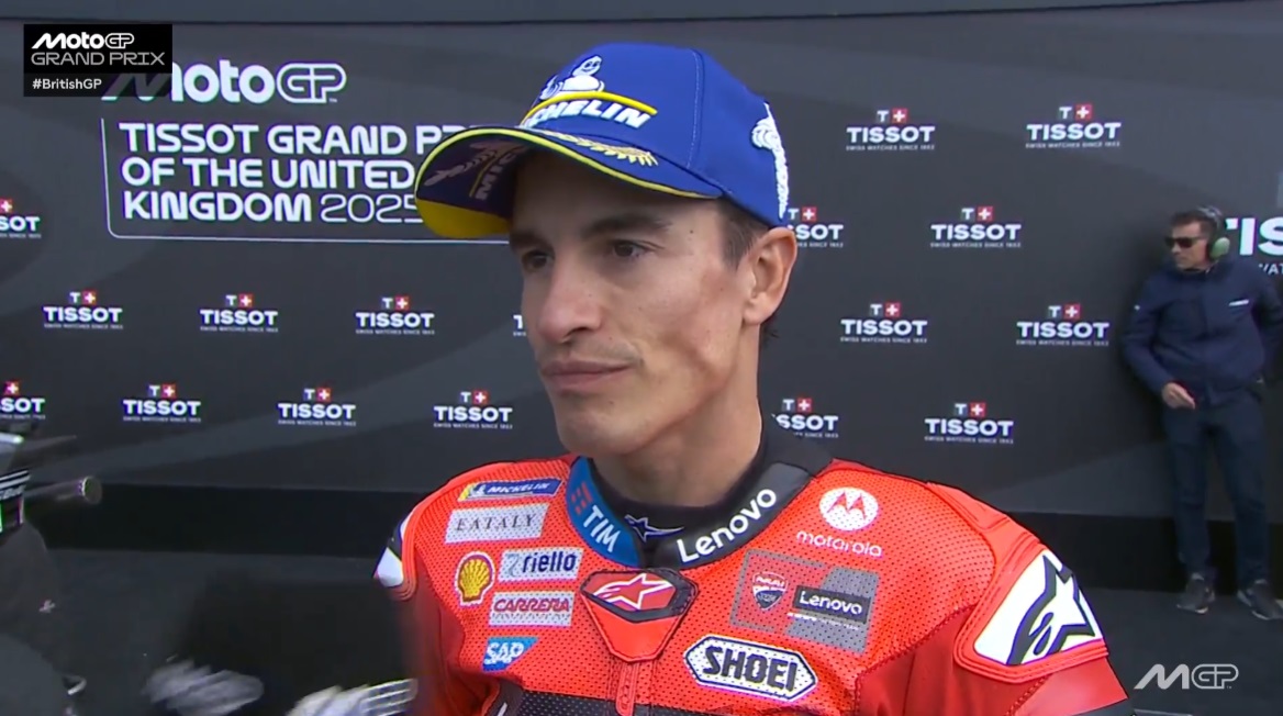 Contrariamente ao que é habitual e numa corrida atípica, a Ducati de Márquez foi a única entre os lugares do pódio em Silverstone.