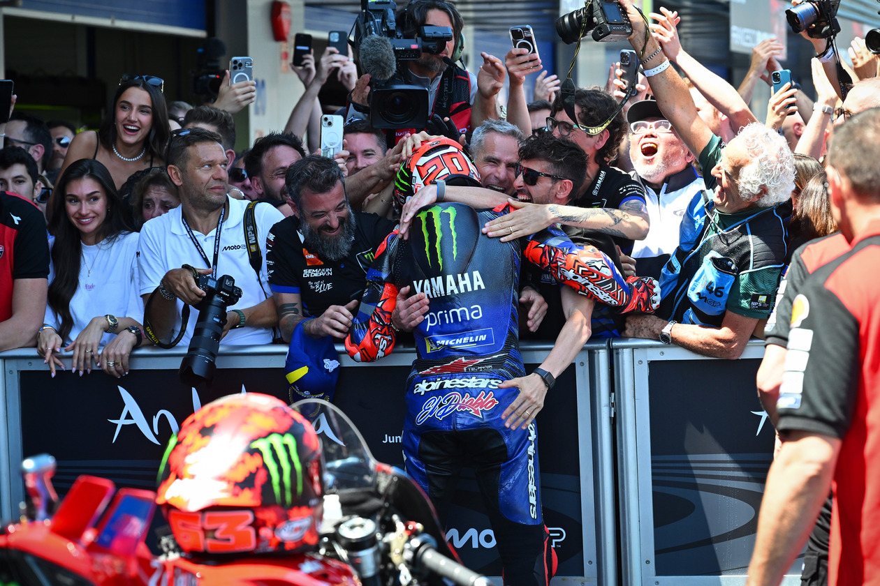 ‘Quero dizer, sim. Obviamente, estudando os dados, foi já um fim de semana incrível para eles com a pole position, e depois ele simplesmente colocou a cereja no topo do bolo. Fez uma corrida fantástica’, comentou Miller quando questionado sobre a confiança de Quartararo com a dianteira da moto e a sua familiaridade com a M1.