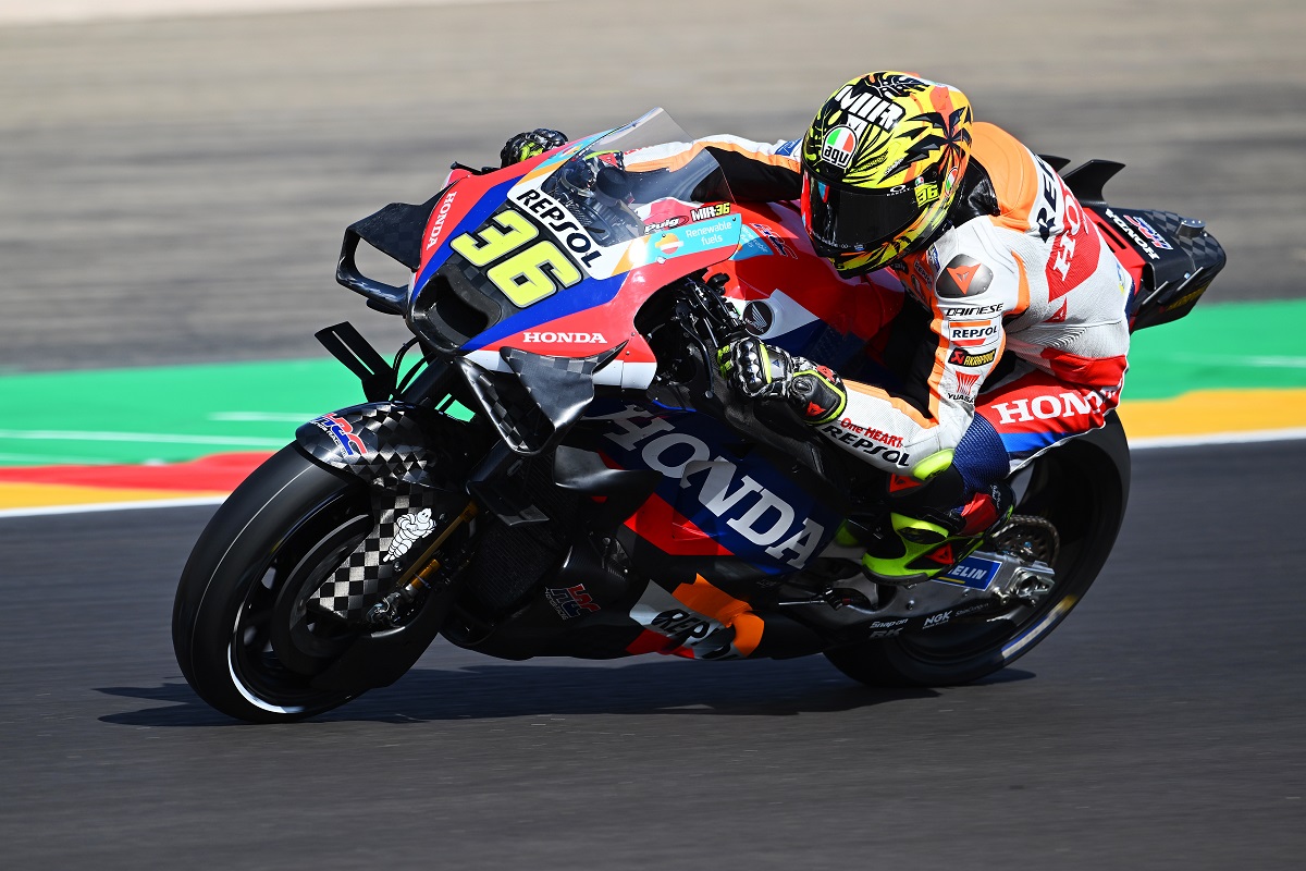 Joan Mir, da Repsol Honda, foi dos que gostou deste novo pneu: ‘É interessante. É um estilo de pilotagem completamente diferente, digamos. O pneu está a funcionar bem, é um pneu que te faz sentir bem no imediato’, disse.