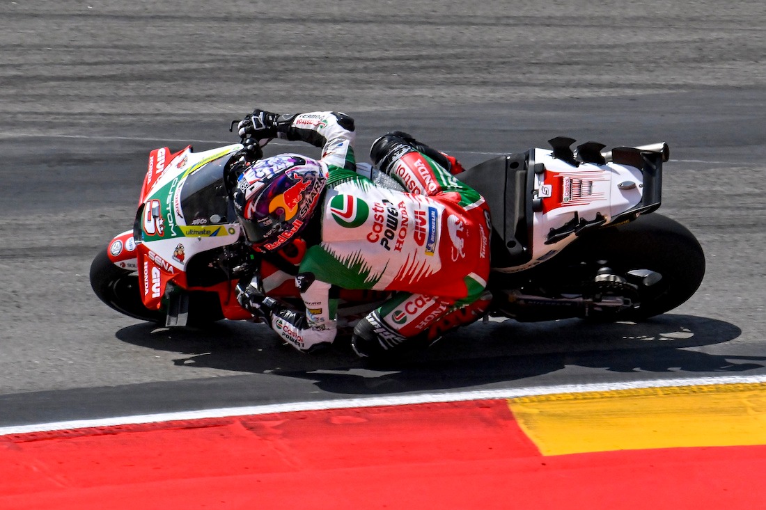 Depois de vários testes técnicos em silêncio, a Honda apostou num passo mais visível e, para Zarco, o resultado foi imediato: ‘Assim que montei a peça, o tempo por volta caiu. O comportamento da moto melhorou logo’.