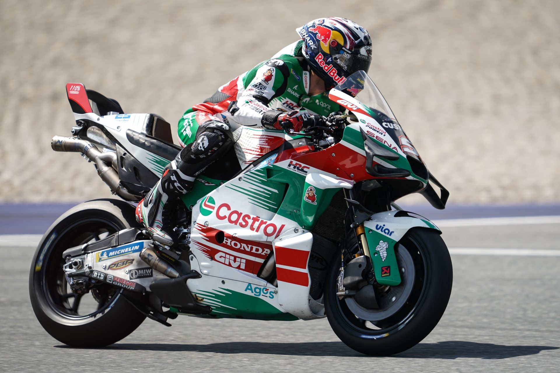O piloto da LCR Honda terminou a corrida de domingo com o 21.º tempo e explicou parte dos problemas que teve: ‘É muito duro. Talvez tenhamos de trabalhar mais na travagem com o motor, porque quando o consegues fazer às vezes a moto é mais regular do que ao travar com o travar traseiro. Com a temperatura muito alta, creio que em Spielberg chegámos a ter 120ºC no pneu da frente parece que a moto não quer travar mais e essa é uma sensação muito estranha’.