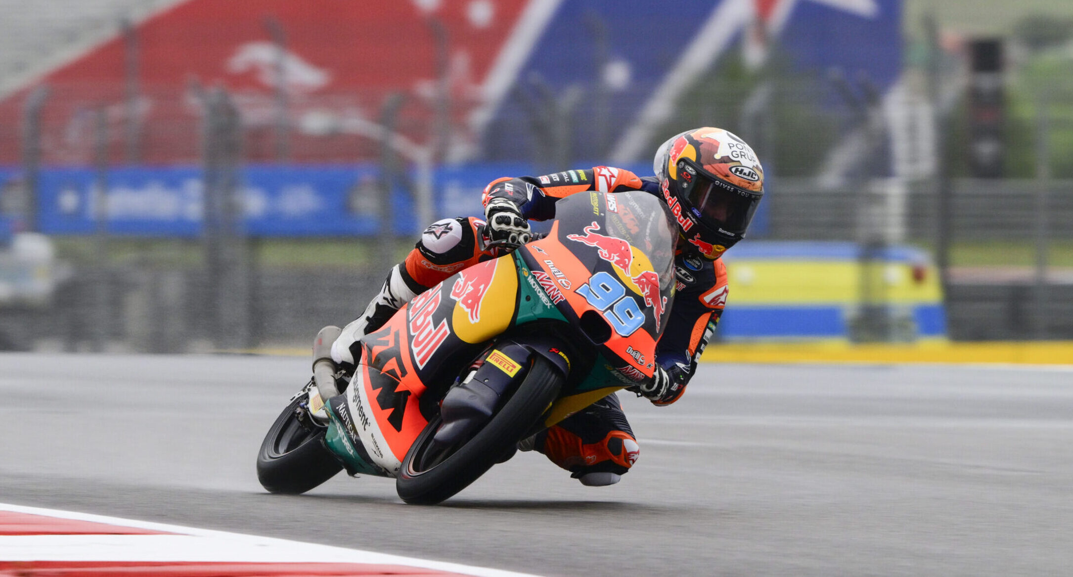 Jose Antonio Rueda é o grande vencedor do GP das Américas no Moto3, com o espanhol da Red Bull KTM Ajo a passar para a frente cedo na corrida e desde então não mais cedeu a posição.