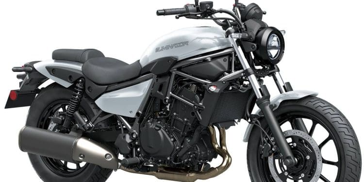 A Kawasaki Motors anunciou recentemente uma novidade na sua linha de cruisers médias – o regresso da cor “Pearl Robotic White” ao modelo Eliminator. Esta opção cromática, que esteve disponível quando o modelo foi lançado em 2023 mas foi posteriormente descontinuada, voltará a fazer parte do catálogo a partir de 19 de abril de 2025.