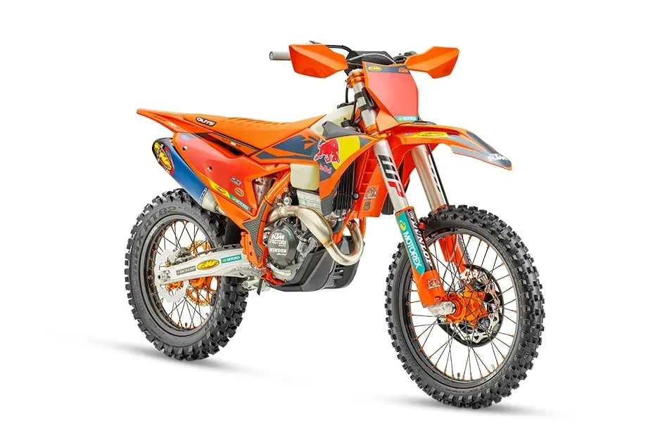 A edição Factory inclui vários elementos exclusivos: grafismos Red Bull FMF KTM Factory Racing, banco específico de competição, pinças de direção e rodas de fábrica, proteção de motor e travões reforçados. Com a produção na fábrica de Mattighofen, a 350 XC-F Factory Edition estará disponível nos concessionários autorizados ainda este mês, oferecendo uma opção de topo para os pilotos que procuram a experiência mais próxima das motos de competição GNCC.