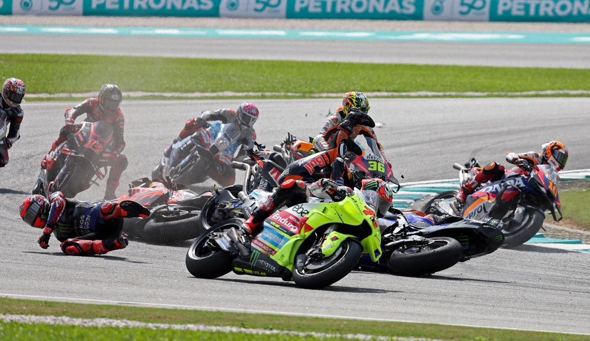 A Red Bull KTM viu os seus pilotos Brad Binder e Jack Miller envolvidos num assustador acidente na primeira curva do GP da Malásia de MotoGP. Francesco Guidotti, diretor de equipa, garantiu que os dois saíram relativamente ilesos.