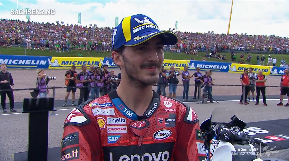 Francesco Bagnaia alcançou este sábado o terceiro lugar na corrida Sprint do GP da Alemanha de MotoGP – pelo que chegou ao fim uma sequência de vitórias que tinha começado em Mugello.