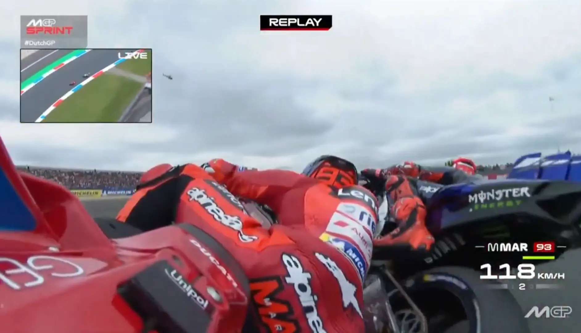 O incidente com Quartararo na primeira curva gerou alguma controvérsia, mas Marc foi claro sobre a sua responsabilidade na situação. ‘Sim. Sim. Sim. Foi meu… se algo acontecesse, seria eu a bater e seria mais culpa minha por ser otimista demais. Mas tentei assumir esse risco. Vi que travei e depois tentei abrandar para cortar a curva, mas depois ele travou bem’, relatou o piloto, mostrando honestidade sobre as suas intenções.