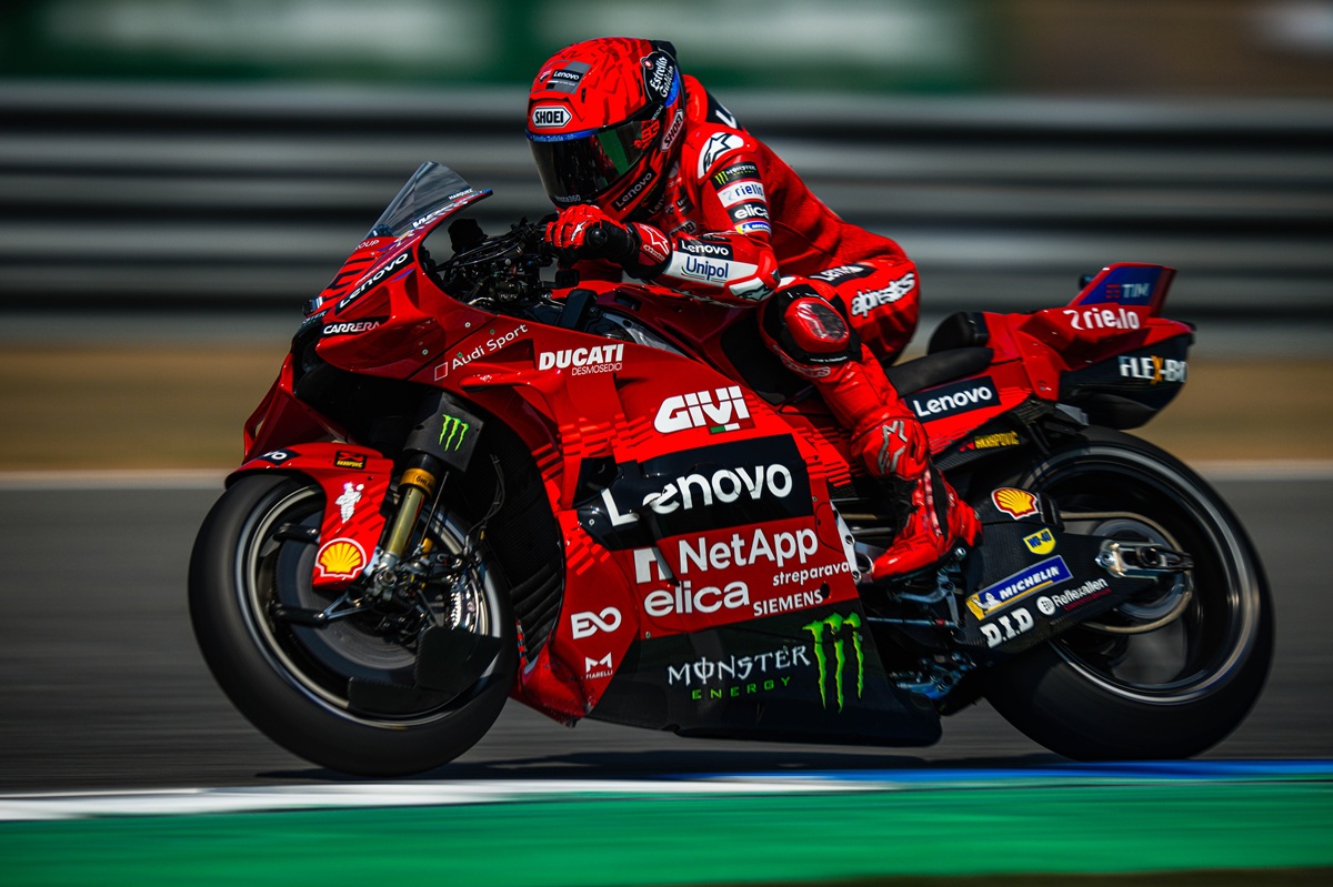 Marc Márquez foi o vencedor do GP da Tailândia de MotoGP, mas não deixou de ter percalços. A pressão do pneu frontal obrigou-o a abdicar da liderança para o irmão Álex (BK8 Gresini/Ducati), e o homem da Ducati só recuperou a posição numa fase tardia.